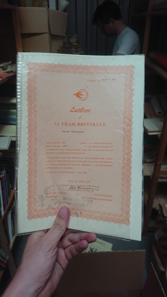Frå i dag er dette materialet kome til Oslo og blir slått i hop med resten av organisasjonens arkiv.